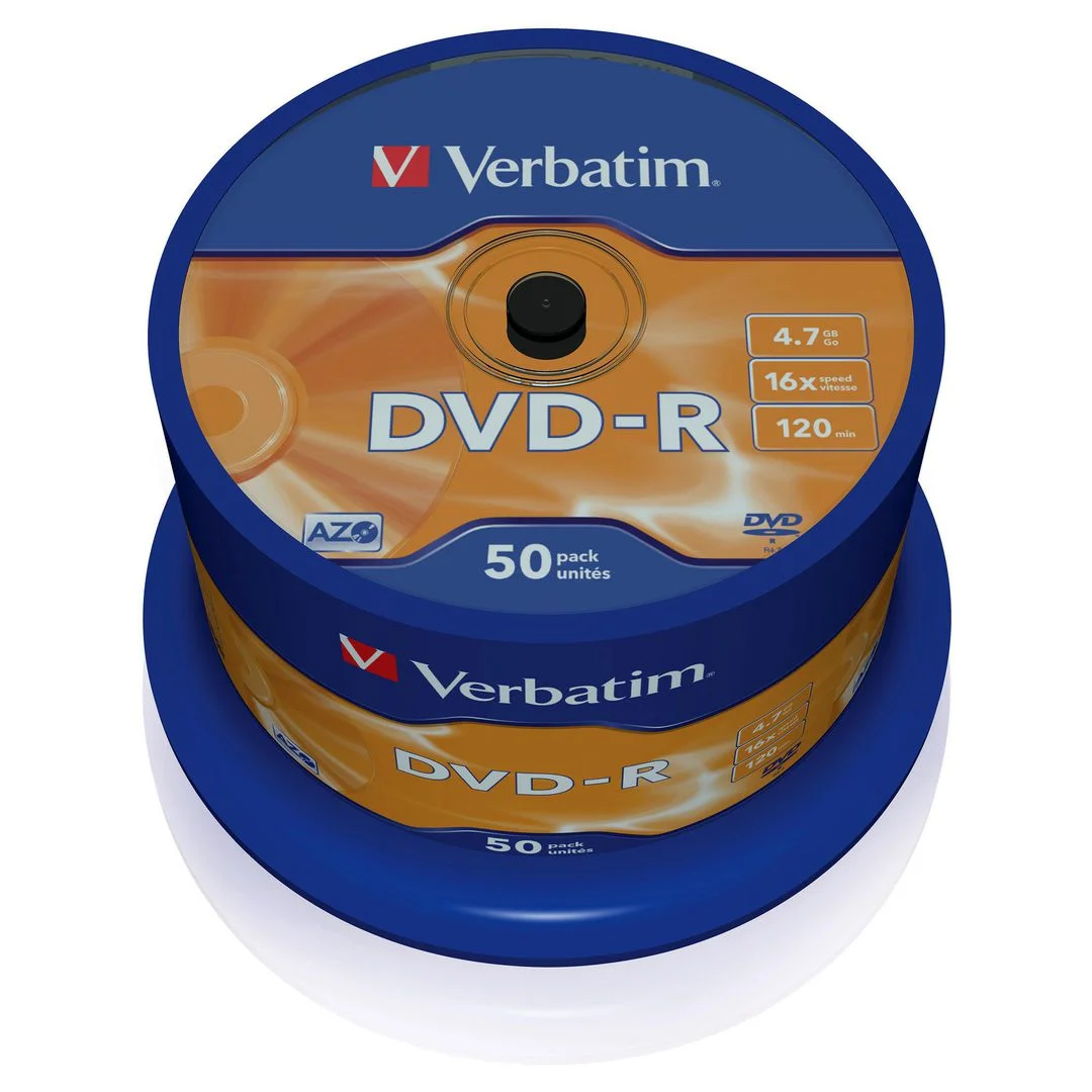 Distribuer presentasjoner, bedriftsvideoer, filmklipp, bilder, data, musikk og annet DVD-materiale av høy kvalitet med Verbatim® DVD-R Azo-plater. Opptakshastighet: 16 X Matt sølvfarget overflate som er ideell for merking av innhold Anbefales av ledende DVD-R-produsenter Azo-opptakspigment optimaliserer lese- og skriveytelsen Overlegent kvalitetsmateriale Spindelpakke med 50 disker.