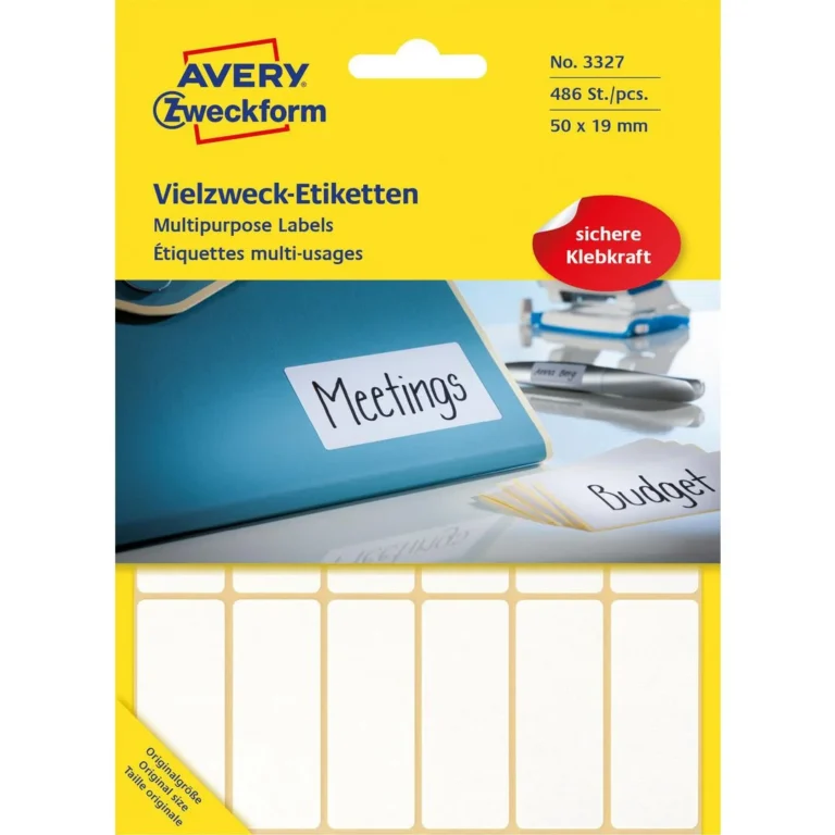 • Med Averys permanente etiketter til å skrive på, 3327, med 486 etiketter/pk og en etikettstørrelse på 50 x 19 mm, kan du skape orden på nulltid og få en god oversikt.