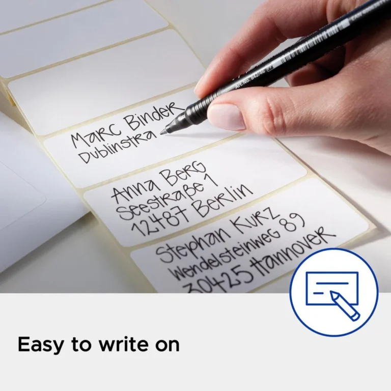 Det er også den enkle etikettløsningen for å ha kontrollen over hvilken nistepakke som tilhører hvem i familien ved frokostbordet, eller hvilket rom flyttekartongene skal settes i under en flytting. De er beregnet for håndskrift, og du kan skrive på dem med tusj, kulepenn, merkepenn, blyant eller et annet skriveredskap du har for hånden Etikettenes størrelse er perfekt til merking av mindre gjenstander De kleber pålitelig, og leveres i mappe for enkel oppbevaring.