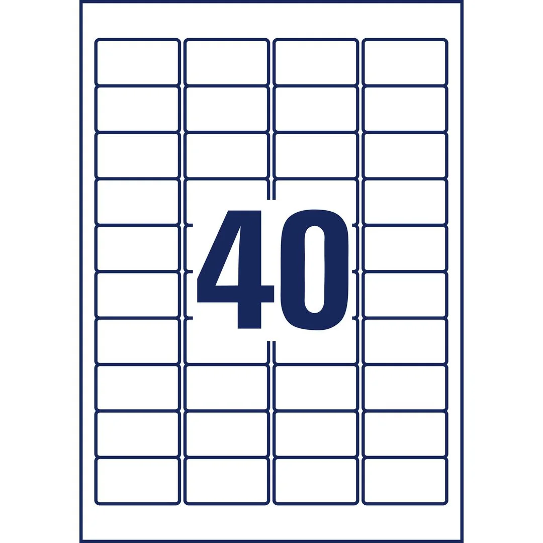 Averys JamFREE™-garanti sikrer at du ikke trenger å bekymre deg om etikettene sitter fast i skriveren. Minietiketter for baksiden av all utgående post Averys JamFREE™-garanti Tilpass etikettene ved hjelp av gratis Avery &: Print Design-programvare Liten og enkel å bruke Papirdimensjon: A4 40 etiketter/ark 100 ark 4000 etiketter/pakke Video.