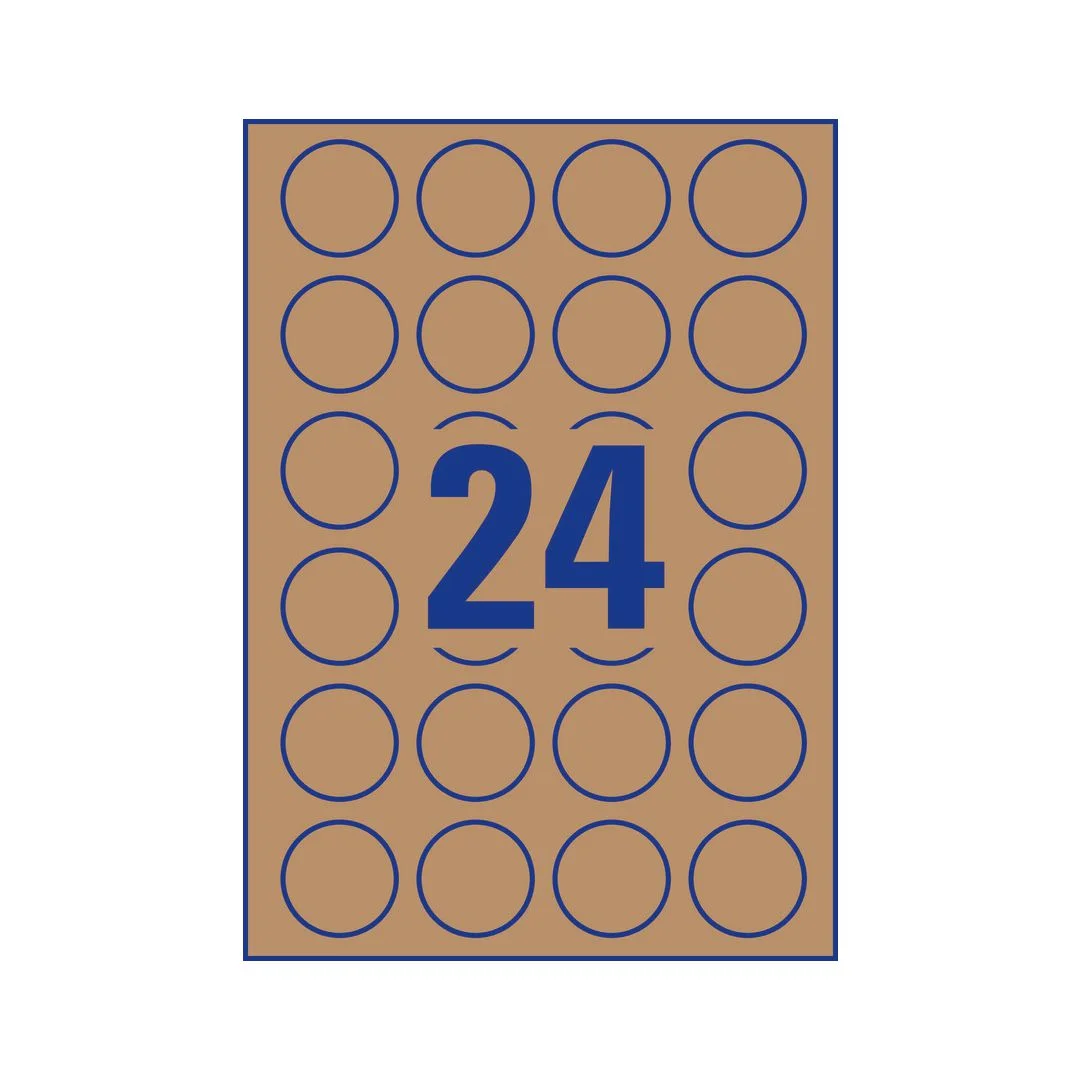 Runde, naturbrune etiketter som kleber permanent og ser flotte ut på både esker, poser, krukker og lignende. Disse etikettene egner seg til å skrives ut til kanten. Du kan enkelt og helt gratis designe og skrive ut Avery-produktene dine med programvaren Avery Design &: Print hvor du finner maler, grafikk og design.