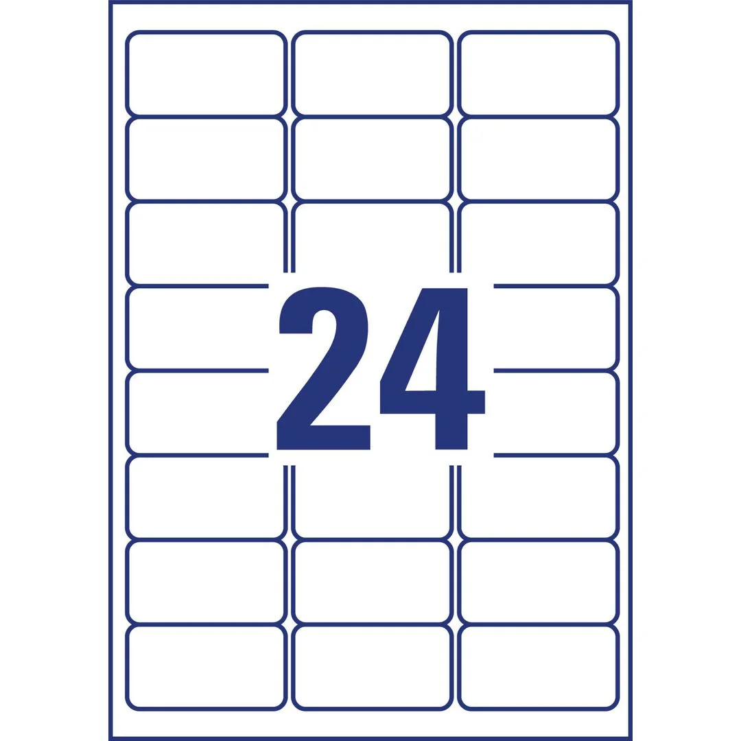 Det gjør dem perfekt til utendørsbruk i all slags vær, og i innemiljøer med høye krav til holdbarhet. Praktiske, flyttbare etiketter som ikke etterlater limrester. 24 etiketter/ark 480 etiketter/pk Etikettene kan skrives ut på alle laserskrivere Motstandsdyktige overfor olje, smuss, vann, fukt, UV-stråler Tåler temperaturer fra -20°C til +80°C Averys JamFREE™-garanti sikrer at du ikke trenger å bekymre deg om etikettene sitter fast i skriveren Tilpass etikettene ved hjelp av gratis Avery &: Print Design-programvare Video.