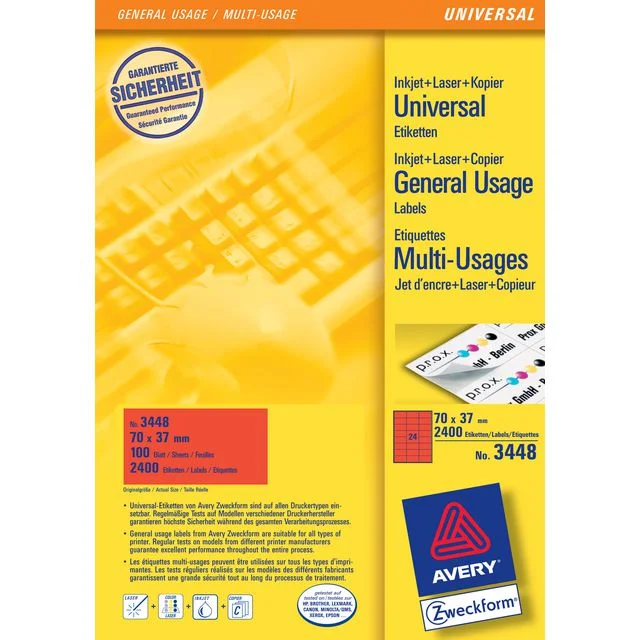 Avery 3448 røde permanente etiketter, for å sortere dokumentene dine etter farge. Fargede etiketter får mer oppmerksomhet. Alle bedrifter etter pris på orden.