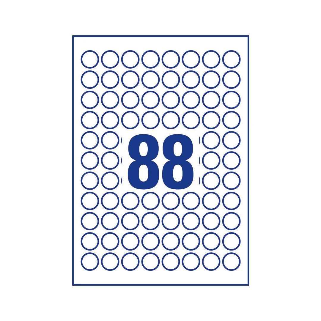- Antall etiketter pr. ark: 88.