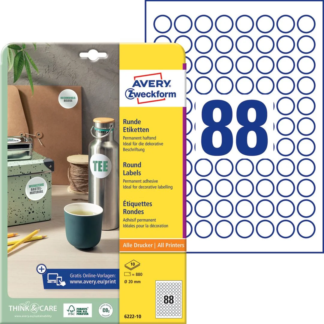 Averys runde etiketter er velegnet som produktetiketter til bruk ved kampanjer, tilbud og andre salgsfremmende tiltak. Etikettene kleber permanent på alle vanlige underlag som glass, plast og papir Du kan enkelt og helt gratis designe og skrive ut Avery-produktene dine med programvaren Avery Design &: Print hvor du finner maler, grafikk og design. Les mer om programvaren her: www. avery.