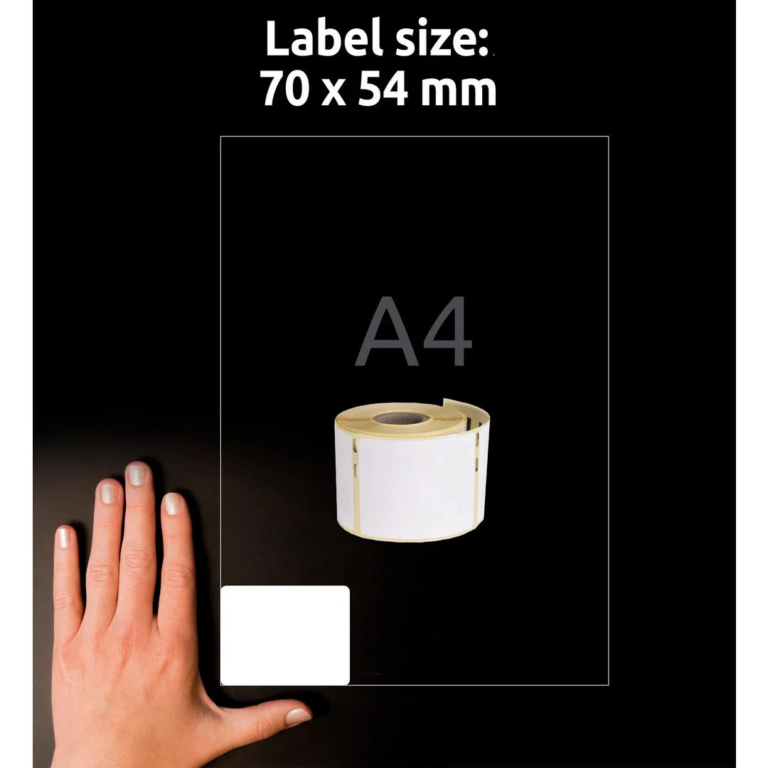 - I pakken er det 1 rull med 320 etiketter 70 x 54 mm.