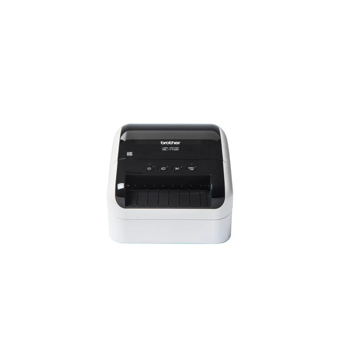 Brother QL1100C er en profesjonell etikettskriver med termoutskrift for leveranseetiketter med en utskriftshastighet på opptil 110 mm per sekund og en utskriftsoppløsning på 300 x 300 dpi. Etikettskriveren har støtte for minst 20 ulike typer DK-etikettruller. Innebygd automatisk kutter for å lage tilpasset lengde på etiketten med tape i løpende lengde. Støtter utskrift av FBA (Fulfilled By Amazon) etiketter gjennom »PDF Crop Print» funksjonen. Innebygd programvare P-touch Editor Lite medfølger, et program der du enkelt kan lage og skrive ut etiketter som inneholder tekst, rammer og bilder, i tillegg kan du lagre opptil 99 etikettmaler.