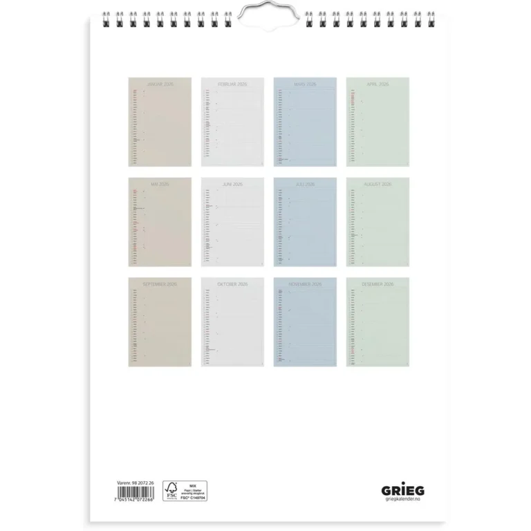 Familiekalender GRIEG 2026 Color A4