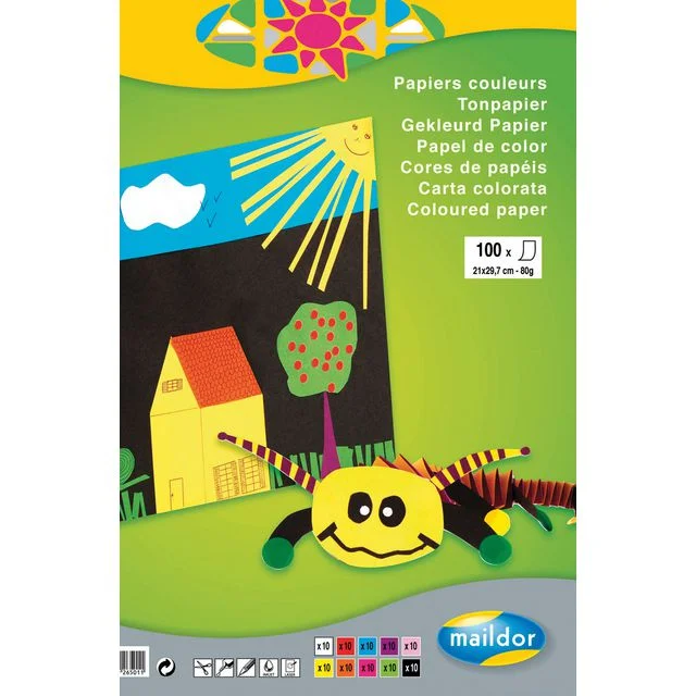 Med Clairefontaine Maildor-fargeblokken kan du være kreativ ved å bruke arkene med sterke farger til håndverkformål. Arkene er tilgjengelige i flere farger og kan brukes til å lage papirbaserte modeller, collager, gratulasjonskort, utklippsbøker eller dekorative utskjæringer.