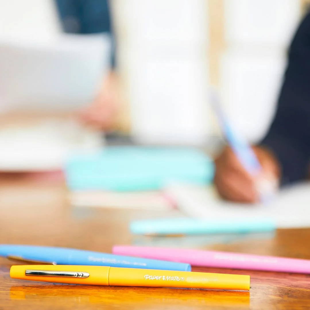 Gled deg over pastellfarger som ikke blør. Paper Mate Flair filtpenner i pastellfarger gir deg smørefritt blekk som ikke blør gjennom papiret.
