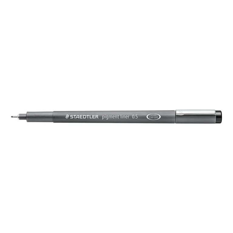 »Presisjon i hver strek – klar til alt, uansett hvor du er!» Opplev perfeksjonen med STAEDTLER® Pigmentliner – din ultimate penn for skriving, skissering og tegning. Denne pennen er utstyrt med en lang metallspiss som er ideell for bruk med linjaler og maler, og gir deg den nøyaktigheten du trenger. Den lysfaste og vanntette blekken sikrer at dine verk varer over tid, uten å trenge gjennom papiret.