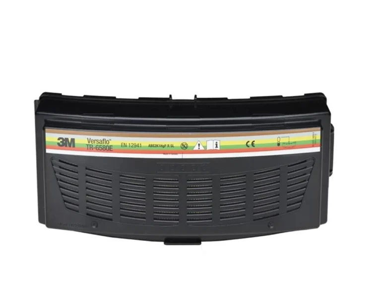 TR-6580E er utformet for bruk med 3M Versaflo batteriturboer i TR-600 og T-800 serien. ABE2K1HgP beskytter mot organiske gasser og damper med kokepunkt > 65 °C, inorganiske gasser, sure gasser, ammoniakk, kvikksølvdamp og partikler.