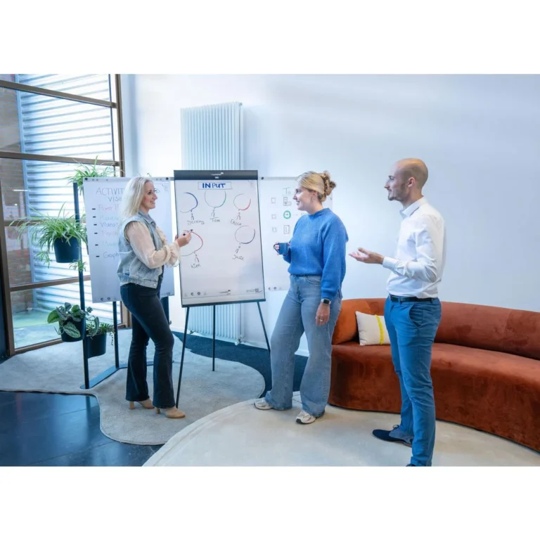 Robust flippoverstativ med magnetisk overflate for intensiv bruk Dette justerbare flippoverstativet kombinerer funksjonalitet og holdbarhet, perfekt for profesjonelle presentasjoner. Med en magnetisk , tørrslettbar overflate kan den også brukes som whiteboard, og de sammenleggbare sidene gir ekstra plass for notater.