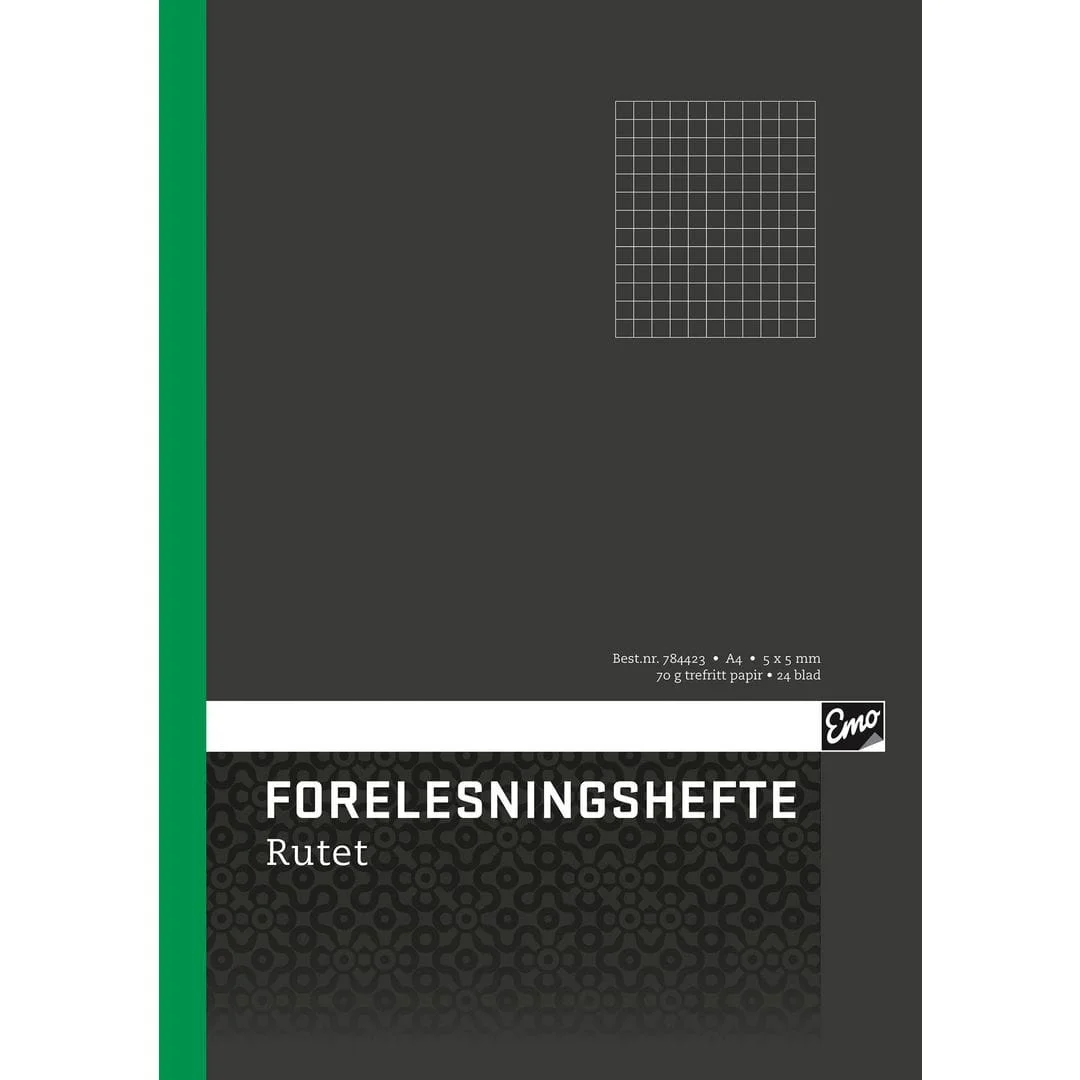 - Forelesningshefte A4 med 5 x 5 mm ruter.