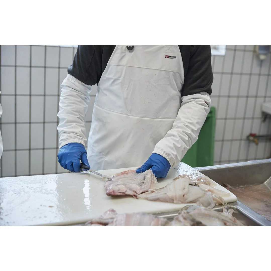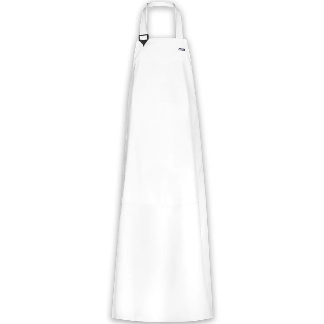 Vind og vanntett forkle i kraftig PU-kvalitet. Justerbar nakke- og midjestropper med beltespenne. Forsterket midtstykke. – Olje og kulderesistent – Størrelse: One size – Vanntetthet: =20.000 MM – Farge: Hvit – Materiale: 100% Polyamid, PU-belegg, 240g/m² – Kan vaskes ved 90 grader
