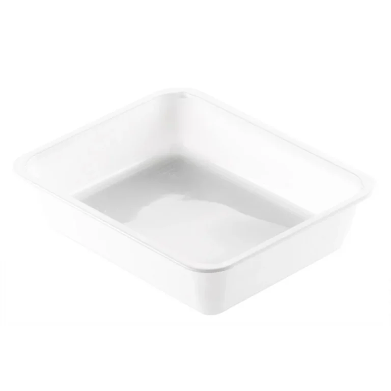 • Laget av 100% resirkulert CPET, egner den seg perfekt til både varm og kald mat. Formen kan forsegles i en Duniform-maskin, og er klar for kjøleskap, fryser, mikrobølgeovn og stekeovn, helt uten å gå på kompromiss med kvalitet eller holdbarhet. Ideell for modifisert atmosfære (MAP) og profesjonell bruk.