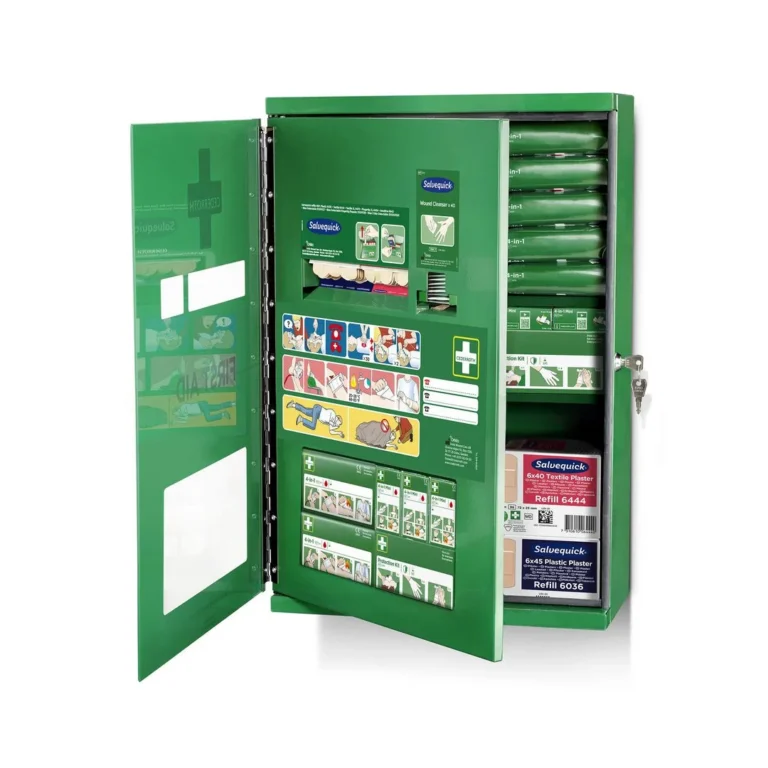 Egner seg på steder der det er behov for å ha en mer omfattende førstehjelpsutrustning. Skapet er laget av stålplater og har to dører som deler inn skapet i to seksjoner. Spesielt tilpasset for arbeidsplasser med utsatt miljø, som f.