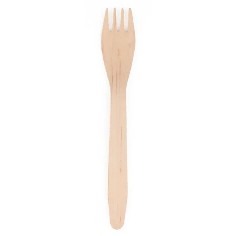 Miljøvennlige engangsgaffel laget av lys bjørk tre. En flott løsning for miljøbevisste kunder.