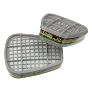 Filtre med ABEK1 beskyttelse mot organiske damper fra stoffer med kokepunkt over 65 grader, uorganiske gasser, sure gasser og ammoniakk.