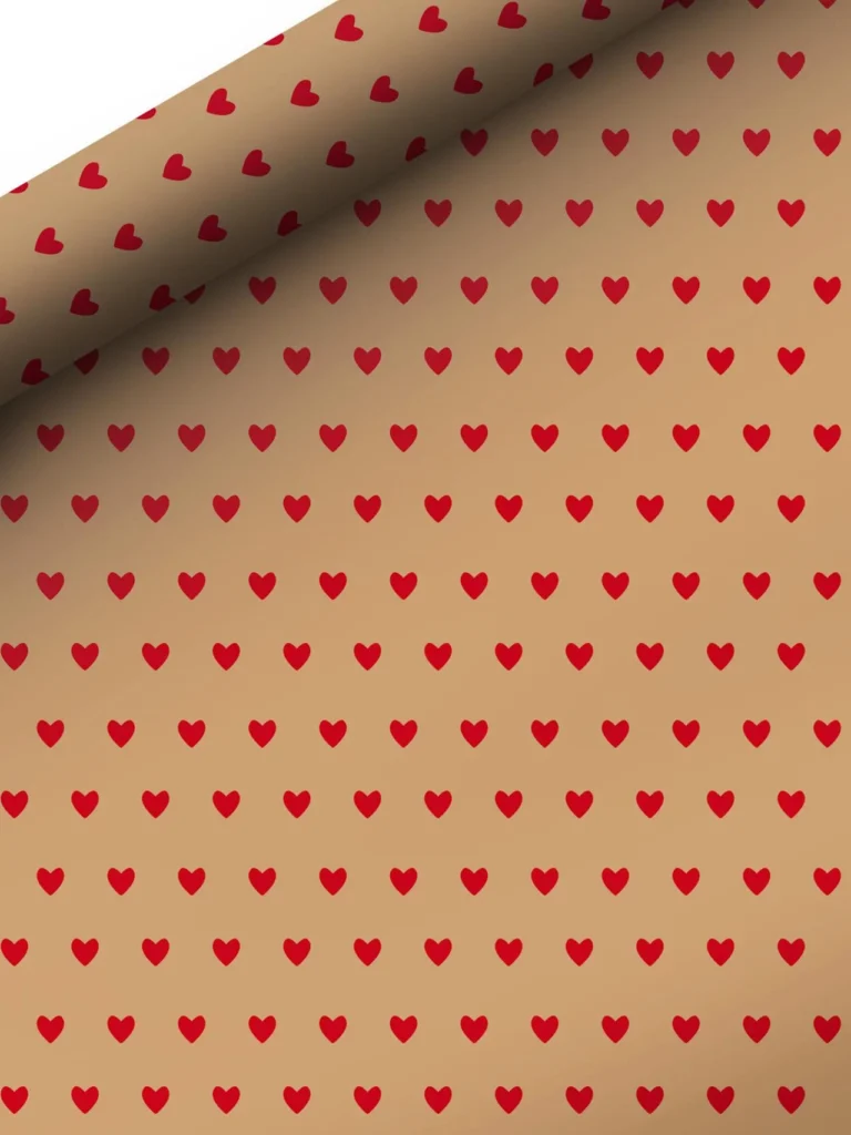 Sett et personlig preg på gaven med dette gavepapiret av kraftpapir i rødt, sølv og gull.