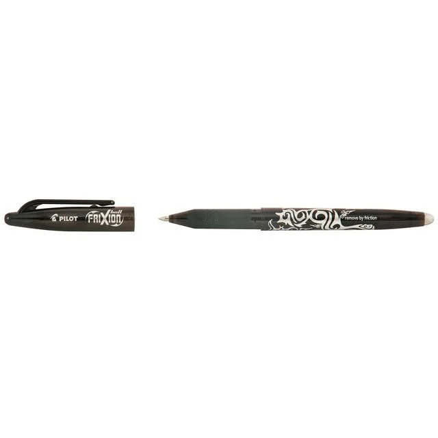 Du kan enkelt fjerne og korrigere feil med gelpennen Pilot FriXion Ball, som har den unike FriXion-visketuppen og varmesensitivt blekk. Denne gelpennen bruker varmesensitivt blekk, som kan viskes ut umiddelbart med FriXion-visketuppen som sitter på enden. Pilot FriXion-kulepennen fjerner enkelt feil så mange ganger som nødvendig uten å smitte av eller rive opp papiret.