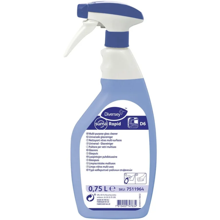 - Bruk: Suma Rapid D6 er klar til bruk. Spray middelet på en myk klut som ikke loer og rengjør overflaten. Gjenta behandlingen for å fjerne vanskelige flekker.