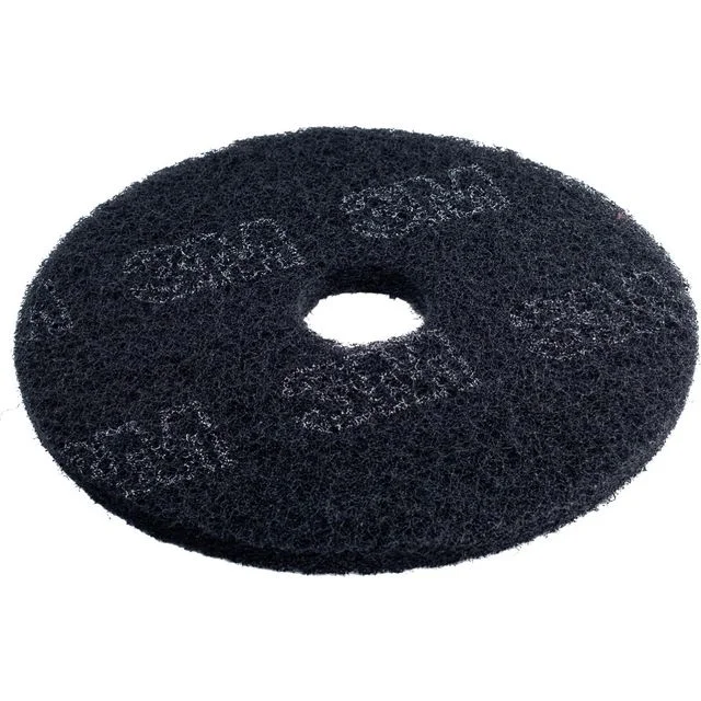 3M Scotch-Brite ™ sort Premium gulvpads som brukes til våt fjerning av gammel skitt på gulv eller grov rengjøring. Den fjerner effektivt gulv finish og sorte flekker. – Hastighet: 150-400 o/min.