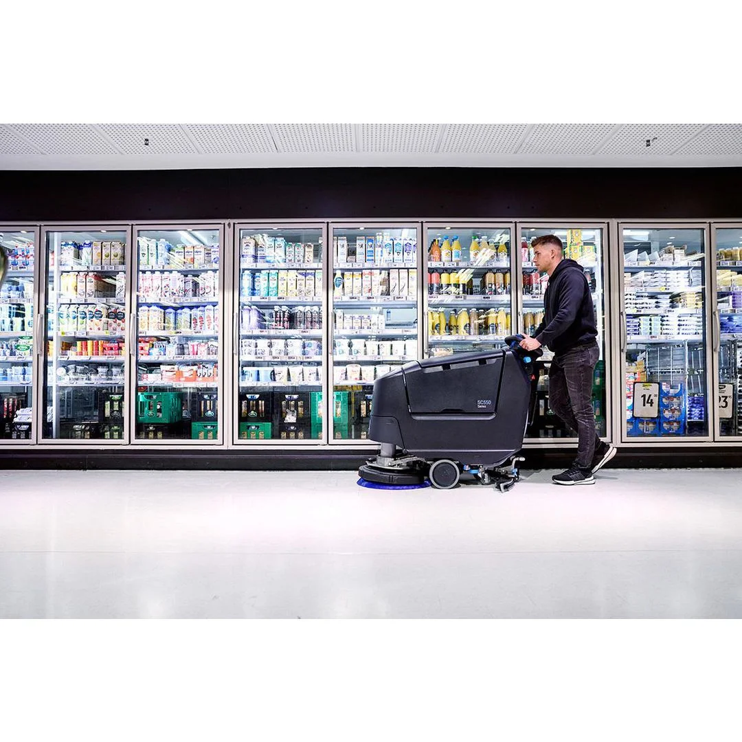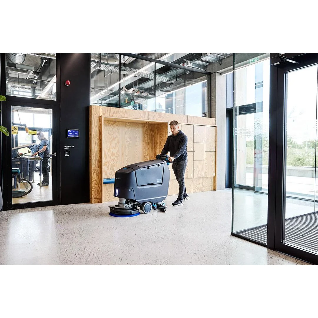 Nilfisk SC550 er en avansert gå-bak gulvvaskemaskin som er enkel å lære seg og intuitiv å bruke, slik at selv førstegangsoperatører kan komme raskt i gang og jobbe profesjonelt. Skjermen på 7 tommer holder høy kvalitet og har en intuitiv betjening som bare viser det nødvendige. SC550 er designet slik at den skal være så behagelig og ergonomisk som mulig.