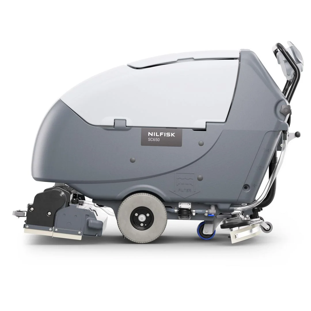 Nilfisk SC650 71C er en gulvvaskemaskin med sylinder børster som leveres komplett med børster, lader ,batteri og kjemidoserings system klar til bruk. SC650 er en svært intuitiv og effektiv gulvvaskemaskin som er laget med tanke på brukervennlighet og -sikkerhet. Den er spesielt godt egnet for rengjøringsbyråer, detaljhandel, kjøpesentre, utdanningsinstitusjoner, helsesektoren og industribransjen.