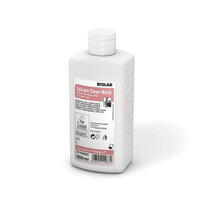 Mild vaskelotion og dusjgel Epicare Clean Wash passer best til håndvask, særlig innen overnatting, i matforedlingsanlegg og matlagingsområder.