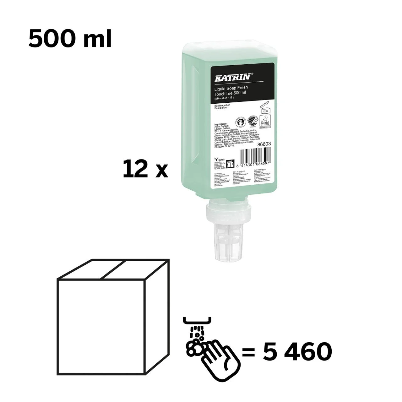 Katrin Touchfree Green er en forfriskende flytende såpe med mild duft av bjørk og gir en luksuriøs følelse av rene og fuktige hender. En berøringsfri løsning med automatisk dosering. En kremet såpe som etterlater hendene myke og fuktige, huden blir ren og får en frisk duft som sitter lenge.