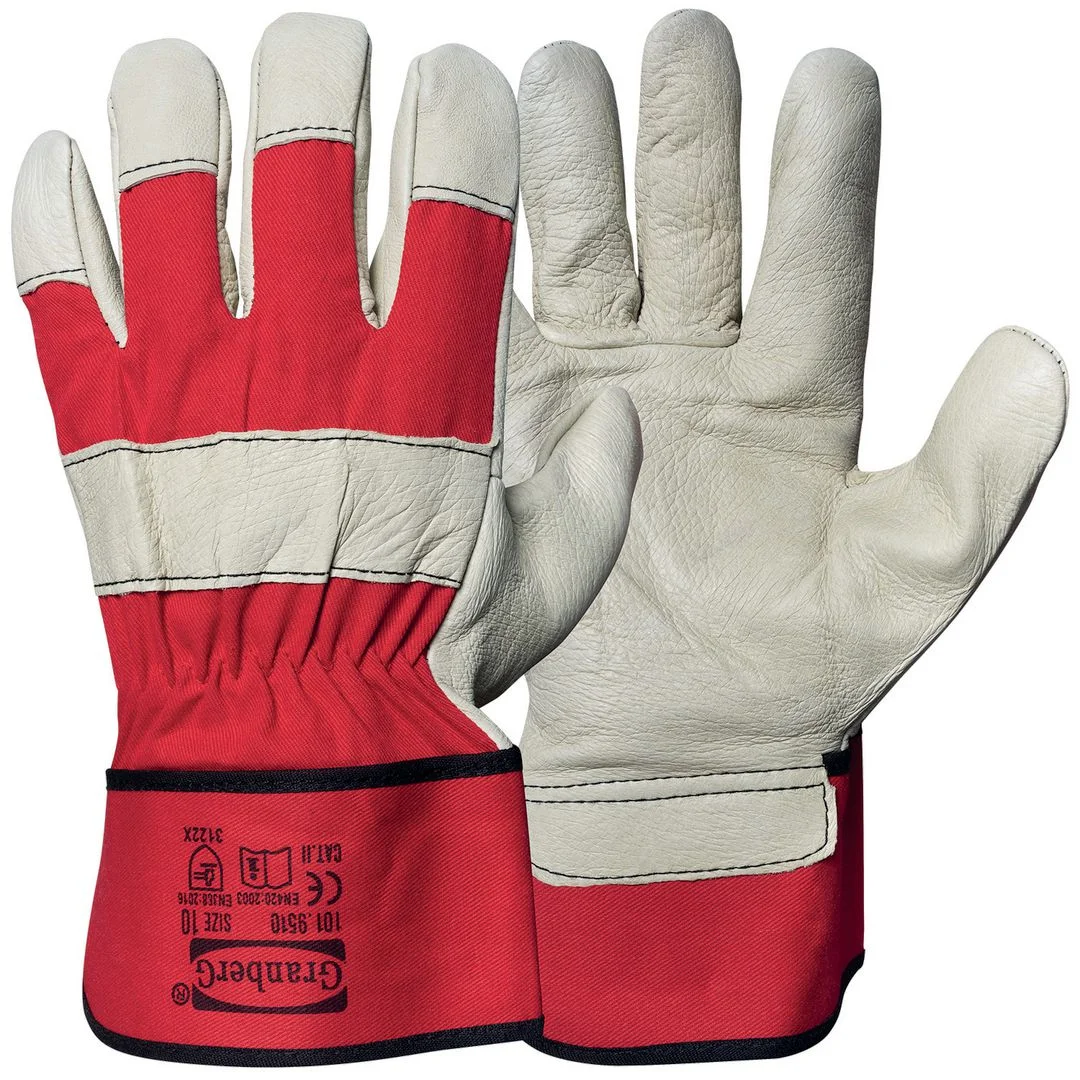 Arbeidshansker svinenarvskinn med gummiert mansjett, halvfôret.