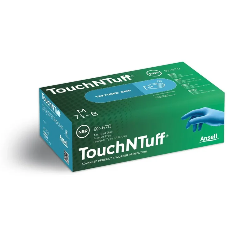 Ansell TouchNTuff 92-670 engangshanske i nitril av svært god kvalitet. Profilert på fingerspissene. Rullet mansjett gir ekstra beskyttelse ved håndleddet og sikrer en sikker passform.