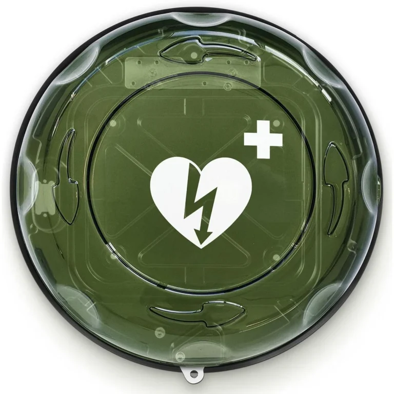 Synlig og beskyttende. Enkelt og kompakt hjertestarterskap i polykarbonat med alarm.