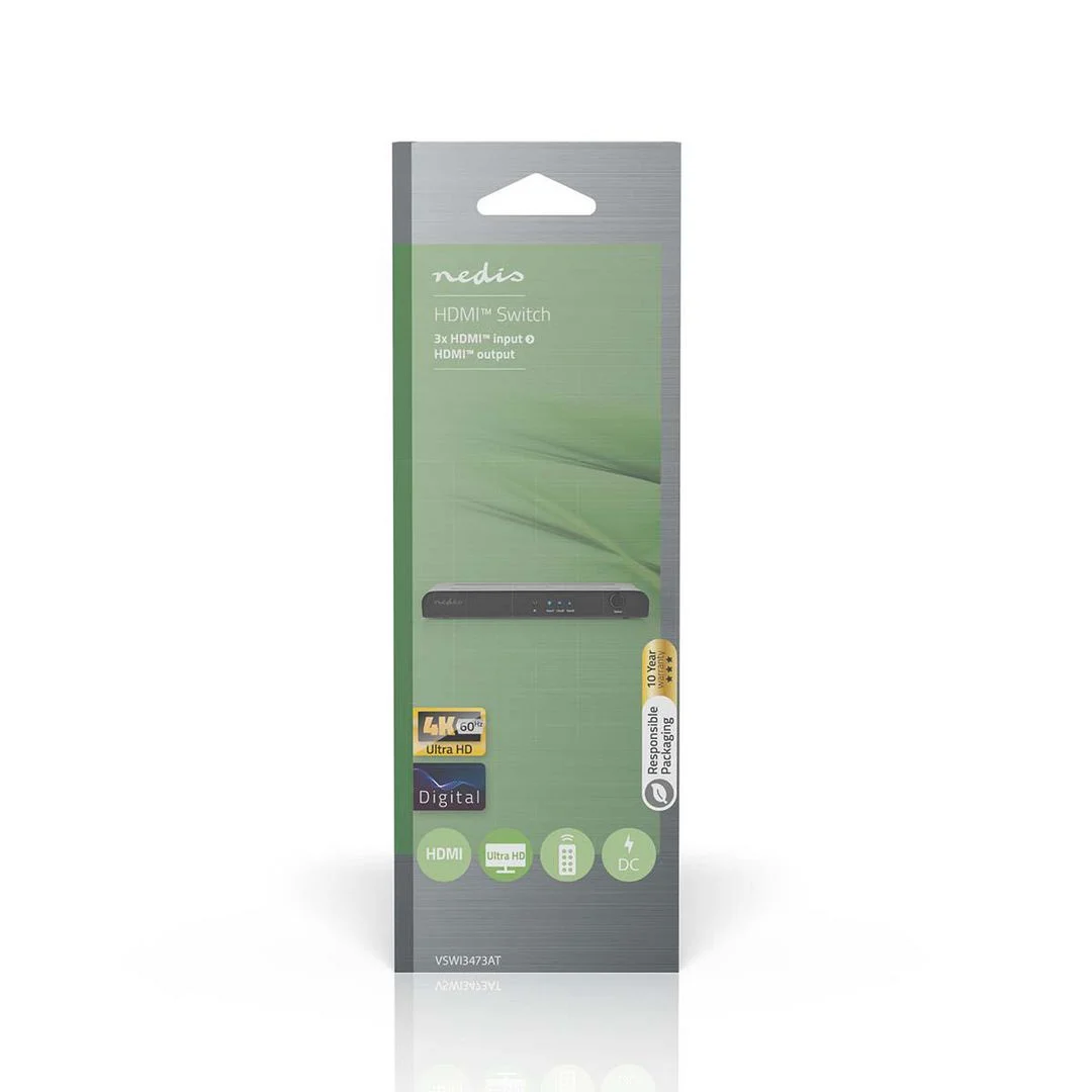 Koble opptil tre HDMI™-enheter til én skjerm med denne kraftige HDMI™-svitsjen fra NEDIS. Perfekt for deg som vil slippe bryet med å koble om kabler mellom TV-dekodere, spillkonsoller, mediespillere og andre enheter.