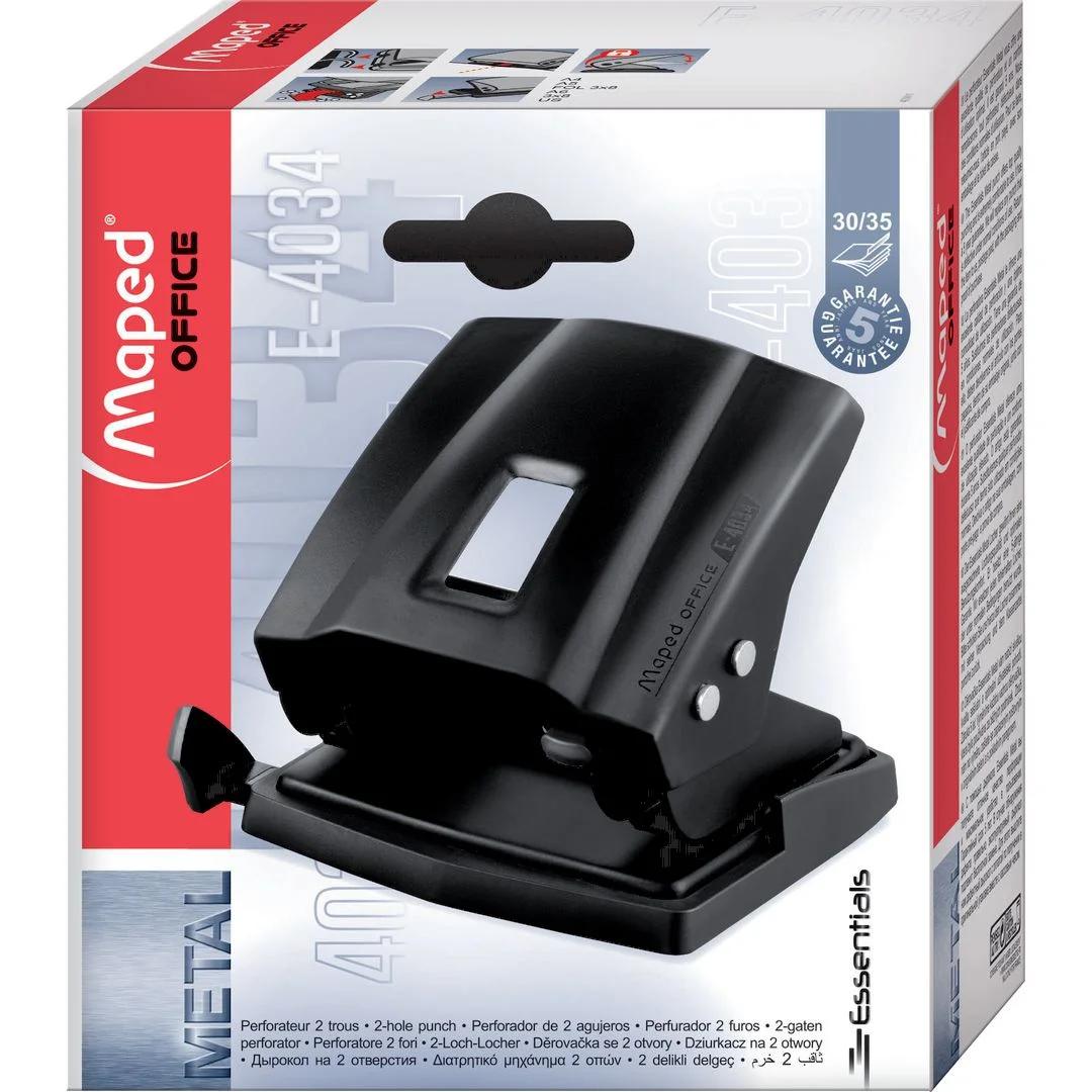 Presis hulltaking gjort enkelt! MAPED 2-hulls hullemaskin er det perfekte verktøyet for effektiv papirhåndtering. Med en kapasitet på opptil 35 ark (80 g) takler den store bunker med letthet.