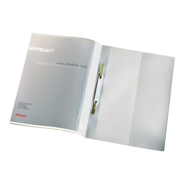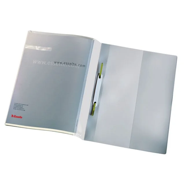 Forside av dobbel plast for innstikk av egen forside Hurtighefter i PVC 8 cm innbindingsmekanisme Mekanisme: Flat 2 hulls festemekanisme i metall.