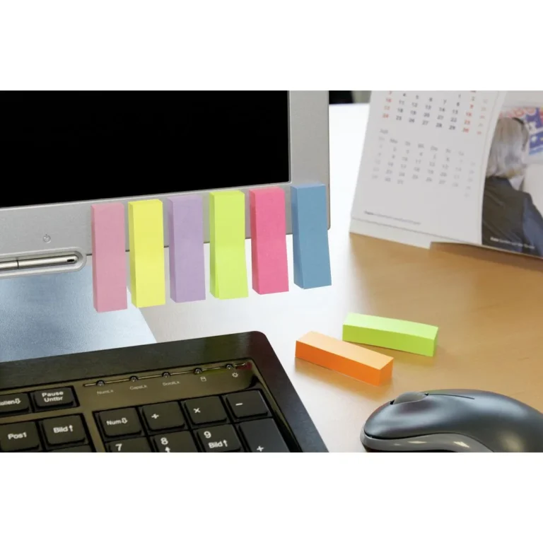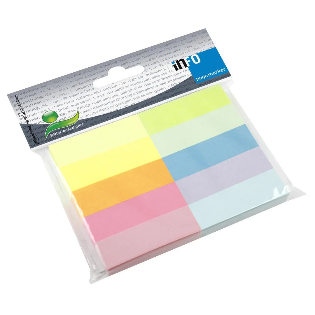 Fargerike sidemarkør til å markere eller utheve viktig informasjon. Ideelle til å markere i dokumenter uten å notere. – Kan enkelt flyttes eller fjernes – Godt egnet til å fargekode dokumenter – Laget med miljøvennlig, vannbasert lim – Størrelse: 10 x 15 x 50mm – 10 farger, 100 ark per farge – Farger: assortert pastell