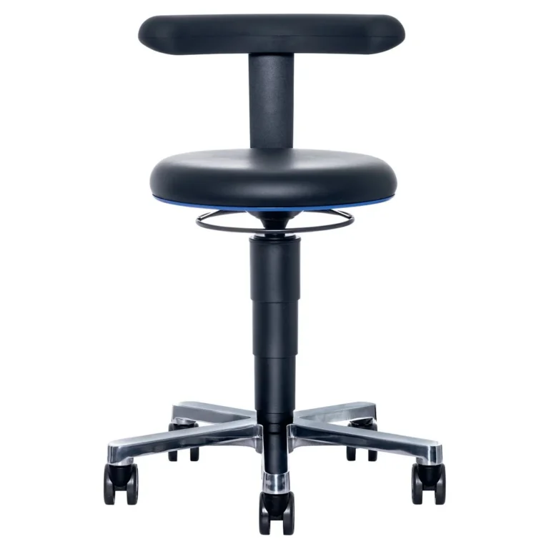 Ergonomisk laboratoriestol med fleksibel støtte og høydejustering.