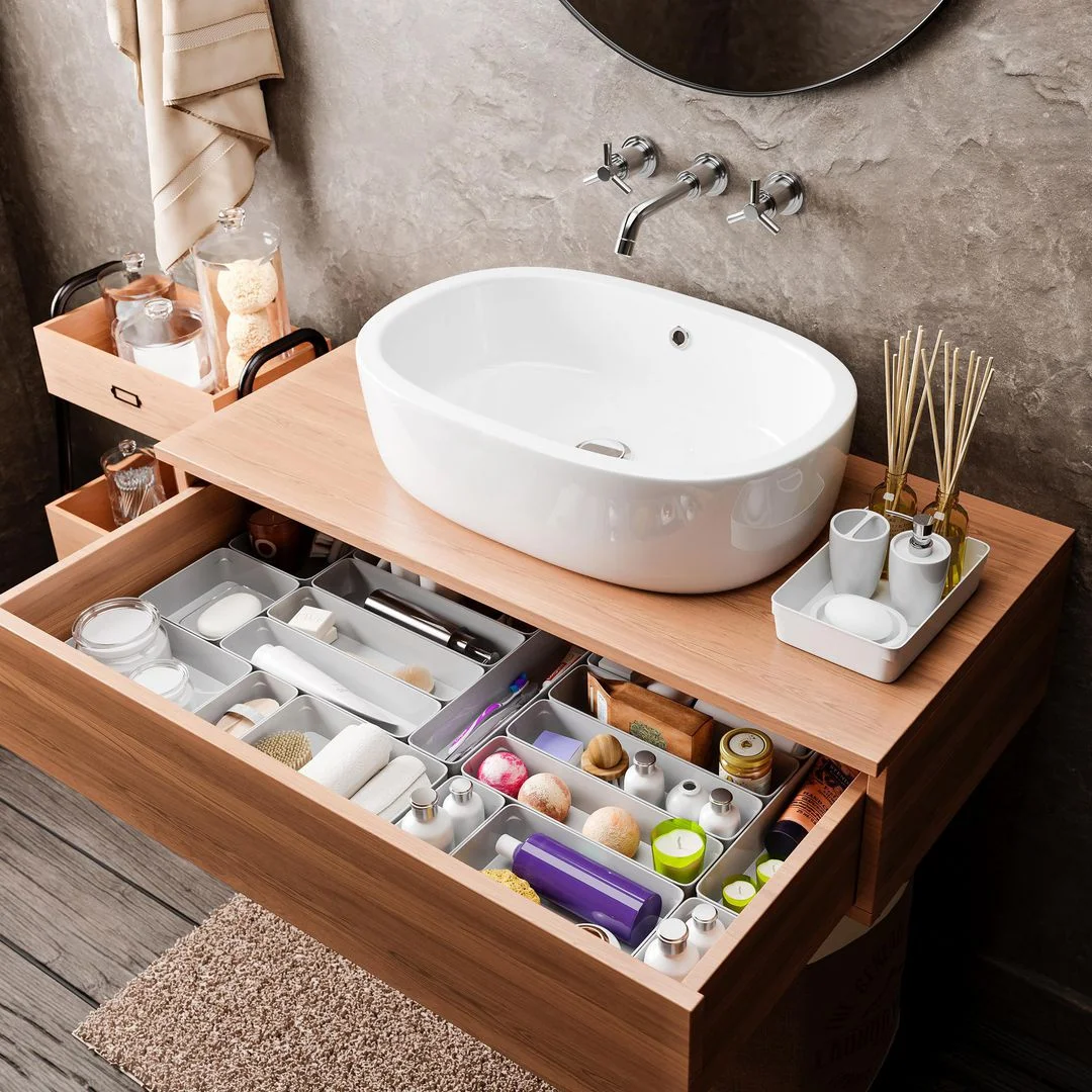 Fleksibel liten oppbevaring for organisering av skuffer og skap.
