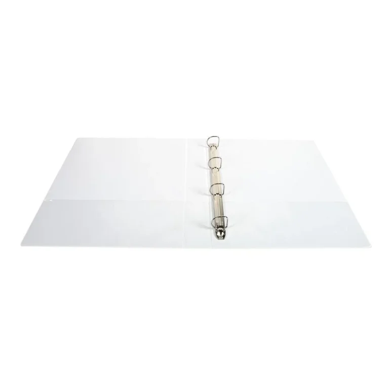 4 ringer på 25 mm Ringtype: D-ring 3 gjennomsiktige lommer på forsiden, baksiden og ryggen 2 gjennomsiktige lommer på innsiden for oppbevaring av løse ark, CD-er eller visittkort Slitesterk.
