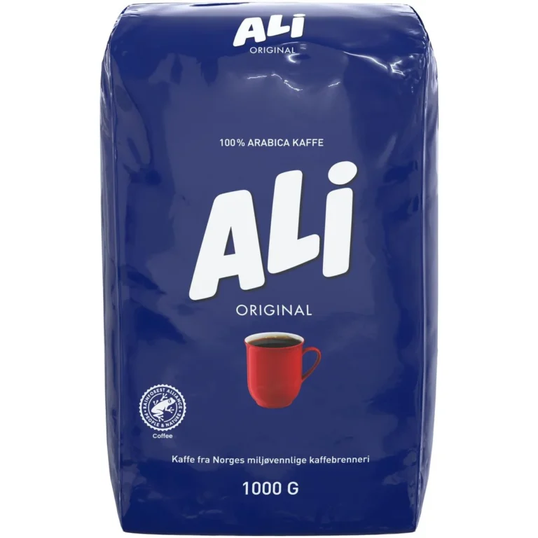 ALI Kaffe består av 100 % Arabica-bønner fra Brasil og Colombia som dyrkes på 1.000 – 1.600 meters høyde, hvor det er perfekt jordsmonn og klima for kaffedyrking. Ved å kombinere kaffebønner fra de to landene får vi fram en perfekt balanse mellom god fylde, fin aroma og lett syrlighet. Brenningen og den spesielle blandingen av kaffebønner gir kaffen en kraftig og fyldig smak som føles både oppkvikkende og stimulerende. Det er derfor vi – med et lite glimt i øyet – sier at ALI Kaffe kurerer gruff. ALI Kaffe blir produsert på Norges miljøvennlige kaffebrenneri som åpnet i 2020. Brenneriet er hovedsakelig bygget i tre, og drives med 100 % fornybar energi. Du kan lese mer om Norges miljøvennlige kaffebrenneri på www.alikaffe.no. – Malingsgrad: automatmalt / ekstra finmalt – Vekt: 1000 gram – Bestillingsenhet: Kartong á 9 poser
