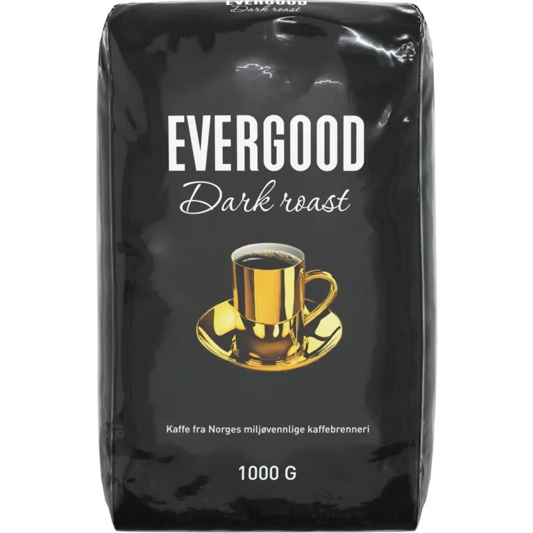 EVERGOOD Kaffe består av 100% Arabica-bønner fra Colombia, Kenya, Costa Rica, Brasil og Guatemala. EVERGOOD Dark Roast er en mørkere brent kaffe med kraftig aroma og kontinentalt preg. I frodige fjellområder høyt over havet, finnes det unike klimaet som modner kaffeplantens bønner langsomt. Slik får den fyldige, aromatiske smaksrikdommen som kjennetegner EVERGOOD Kaffe tid til å utvikle seg.