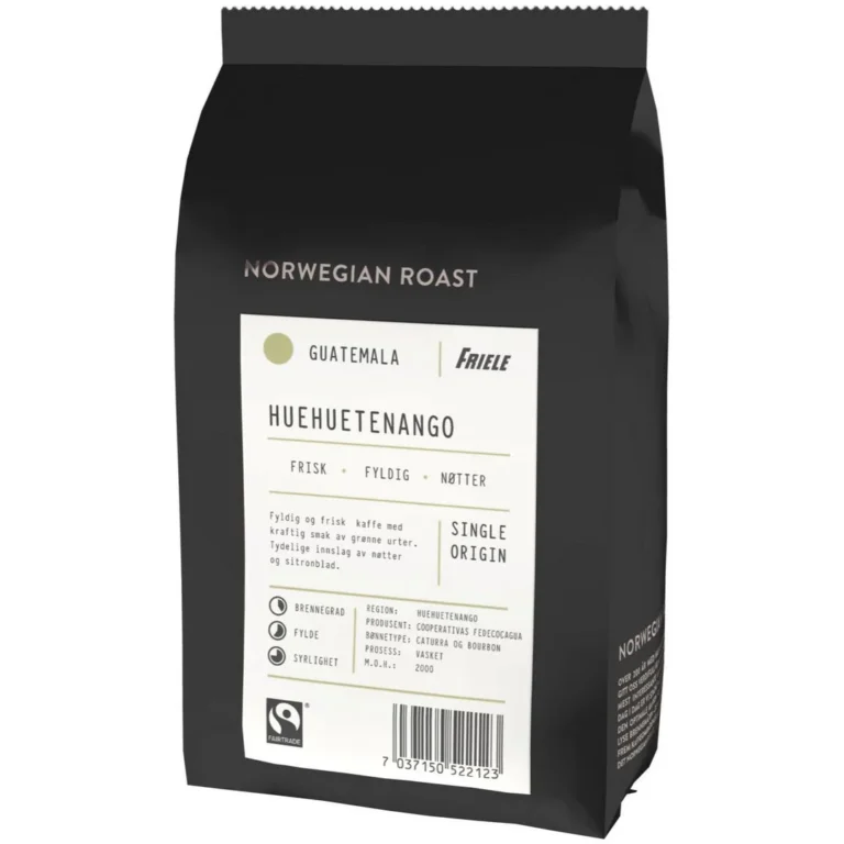 Start dagen med en forfriskende og aromatisk kopp kaffe. Fyldig og frisk kaffe med smak av grønne urter. Tydelige innslag av nøtter og sitronblad. Kaffen dyrkes i Huehuetenango-regionen i Guatemala, under skyggetrær i bratt terreng opptil 2000 m.