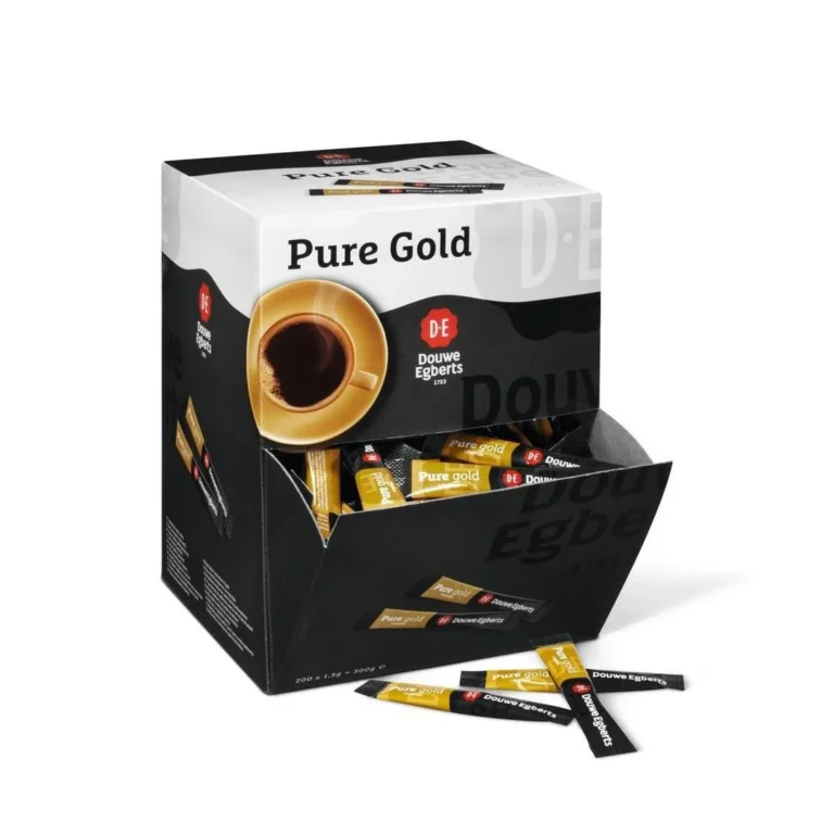Douwe Egberts Pure Gold Instant Kaffe kommer i praktiske porsjonsposer , og og er velegnet til bruk der det ikke er tilgang på kaffemaskiner.