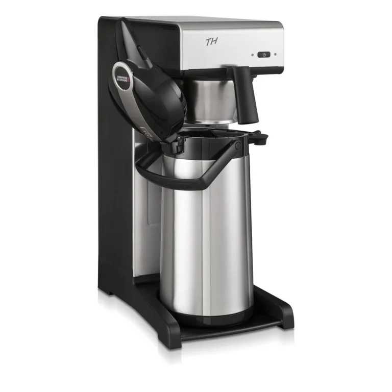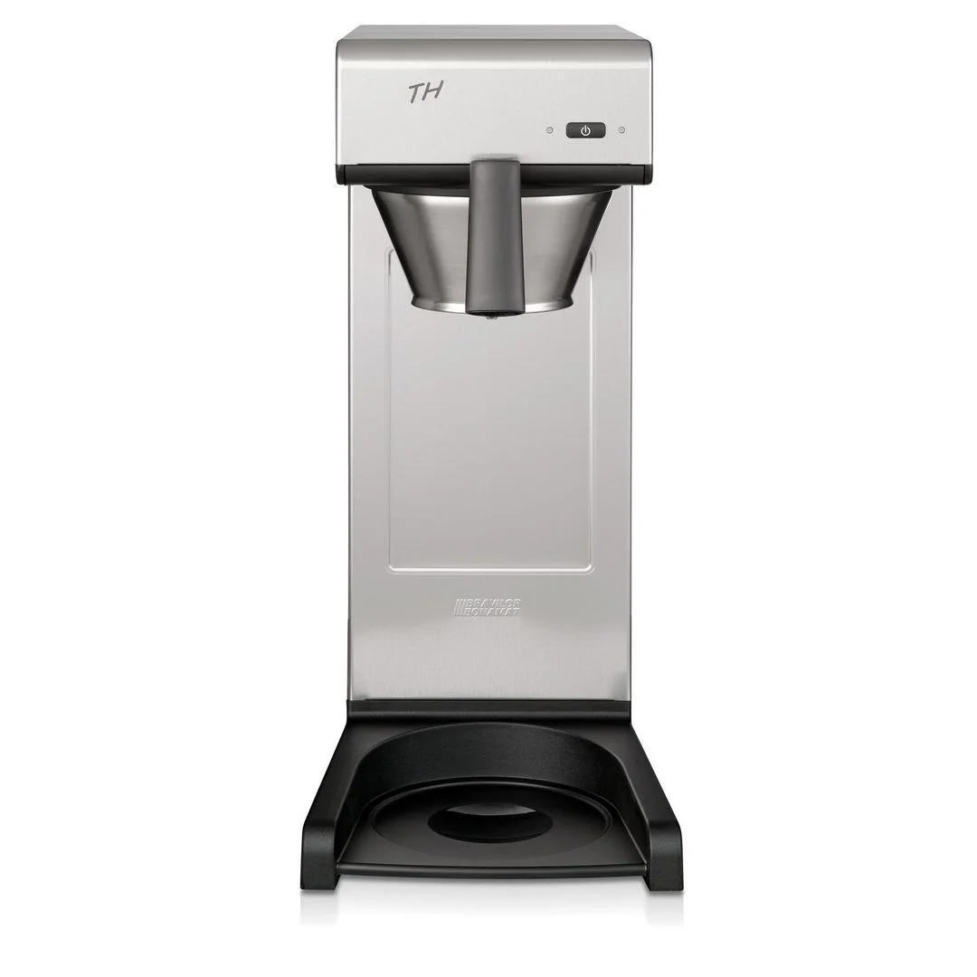TH har manuell vannpåfylling via et lokk i front på trakteren. Trakter kaffe direkte i pumpetermos eller termokanne (følger ikke med) Maskinen varsler når kaffen er klar og når det er behov for rensing Traktetid: 7 minutter.