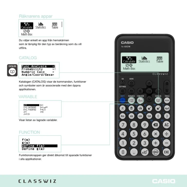 FX-82CW med over 290 funksjoner i ClassWiz-serien.