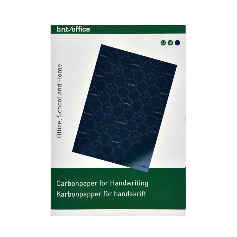 Med karbonpapir fra BNT kan du lage presise kopier av håndskrift eller maskinskrevne dokumenter på en enkel måte. Plasser karbonpapiret mellom to ark, skriv eller tegn på øverste ark, og få en nøyaktig kopi uten behov for elektroniske hjelpemidler.