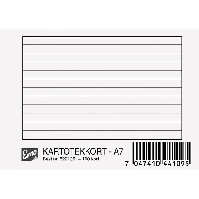 Kartotekkort i 200g kartong Linjert 100 kort pakket i krympefilm.
