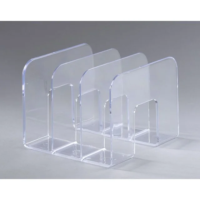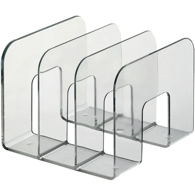 Dette robuste stativet har tre skillevegger for effektiv organisering og er konstruert med plast for maksimal holdbarhet og for et gjennomsiktig og sømløst utseende. Du kan bruke dette Durable-bokstativet hjemme med bokhyller, i båser eller på kontorer eller i mediesentre på skolen for enkel oppbevaring. Organiser filer, bøker og andre medier på en effektiv måte 3 skillevegger Slitesterk plastkonstruksjon for langvarig bruk.